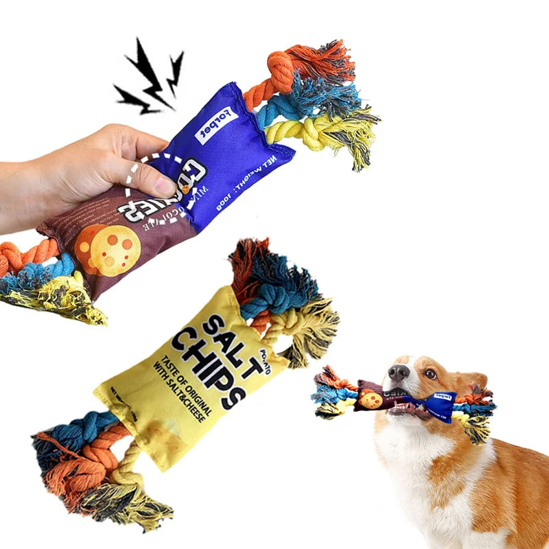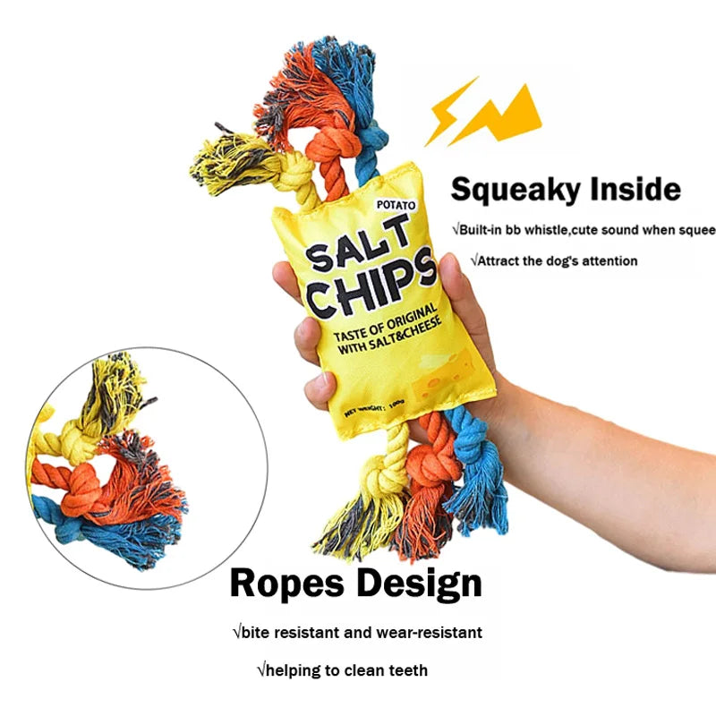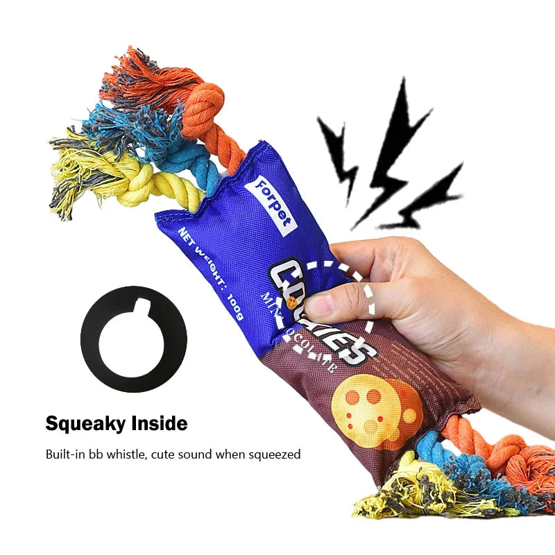 - Crunchy Snack Squeaky Toy: Playful toys shaped like cookies or a pack of chips for fun, snack-themed entertainment.